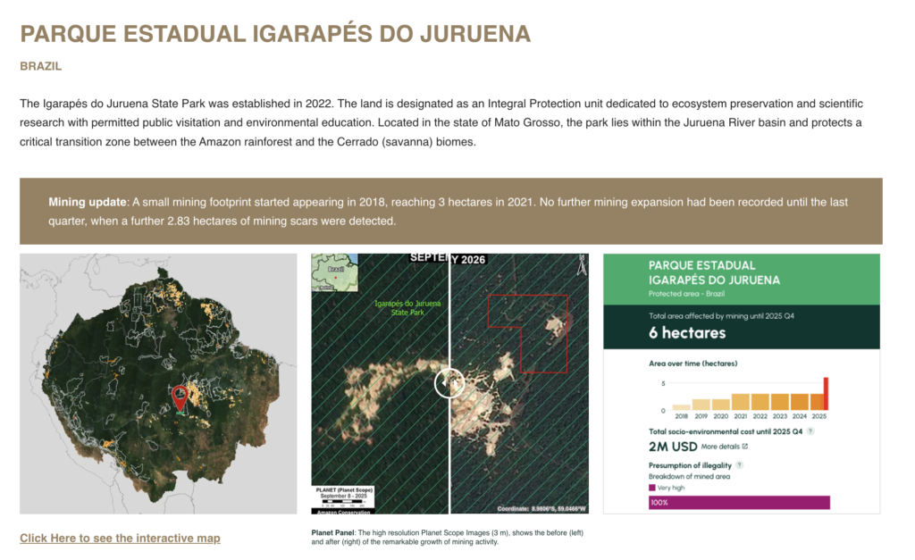 The recent launch of the Amazon Mining Watch’s Panorama reporting series marks a major step forward in making complex data more accessible and actionable. The inaugural report covering October through December 2025 revealed that in just these three months, approximately 6,000 hectares (14,000 acres) of forest were lost to gold mining across the Amazon, a stark reminder of the speed and scale of this growing threat. But data alone does not create change. Through our partnership with the Pulitzer Center, this information is being translated into stories that reach global audiences and bring local realities to international attention. By combining satellite-based monitoring with data-driven and investigative journalism, we are expanding public awareness of illegal mining as a transboundary issue that affects ecosystems, Indigenous territories, and communities across the entire Amazon Basin.